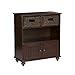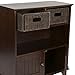 Brushed Nickel Door Knobs. This beautiful rich espresso finish storage console is a must-have addition to your home. This unique console delivers traditional storage and a display shelf. Above the display shelf are two rattan drawers for placemats, silverware and accessories. Beneath are 2 divided storage areas enclosed with artfully crafted doors accented with brushed nickel doorknobs.