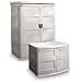Crafted from durable, weather-resistant resin. Tidy up your yard, deck, or garage with this 30-cubic-foot horizontal storage shed from Suncast. Built with a ramp to accommodate two rolling 30-gallon garbage cans, the unit also comes in handy for storing mowers, sports equipment, and outdoor toys. Combining durable resin materials with a stay-dry design, the shed provides easy, flexible access through its lift-up lid or double doors. A foot latch secures the closed doors to the floor, while a padlock hasp adds extra security. Built-in supports let you add a wood shelf for double-decker organizing. The tool-free assembly takes less than half an hour.
