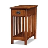 Hand Padded Finish. The Mission Chairside Table highlights the best of American furniture style, with blackened ironware, slatted elements and corbel supported tops. Made of solid wood with oak veneers and a hand padded medium oak finish, this end table has all the elements of authentic mission furniture. A solid wood drawer box is hung with full extension, ball bearing drawer guides for storage, while the bottom shelf offers a place to keep books, magazines and more. Solid ash and oak veneers. Additional Mission Occasional Tables available: Sofa Table, Coffee Table, End Table. Assembly level/degree of difficulty: Easy.